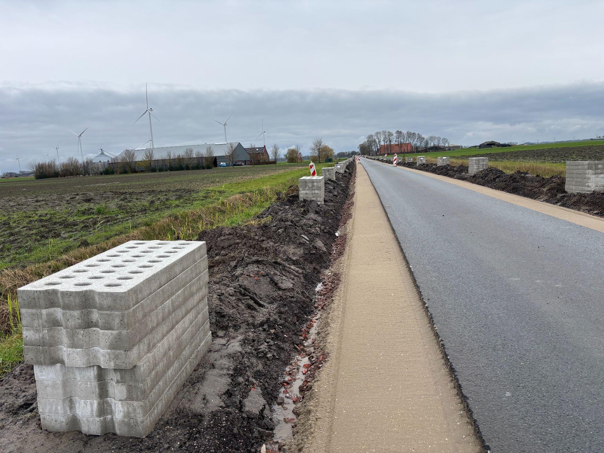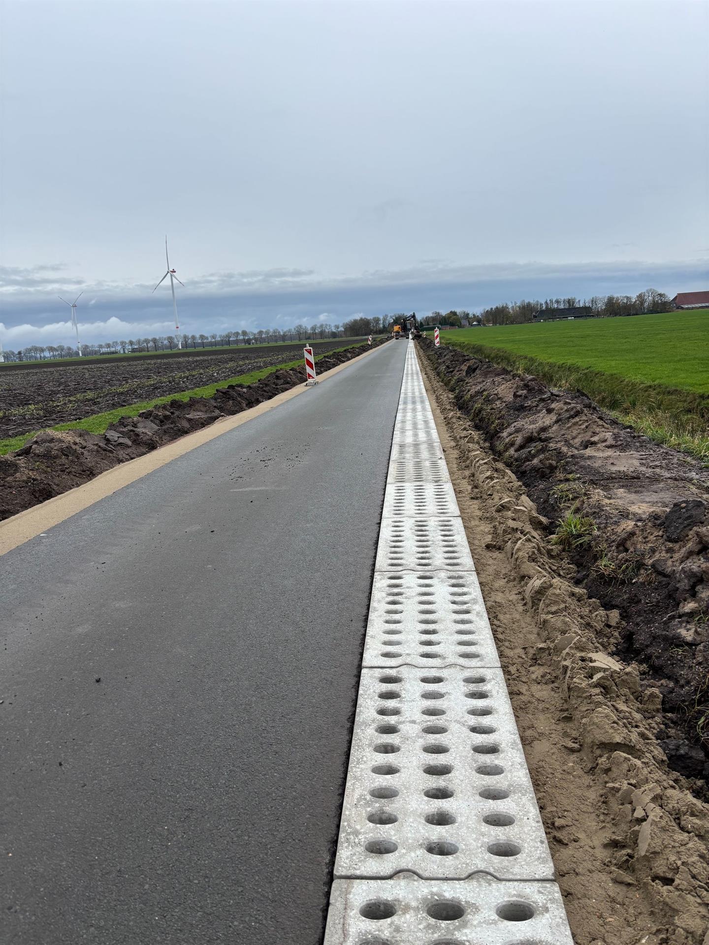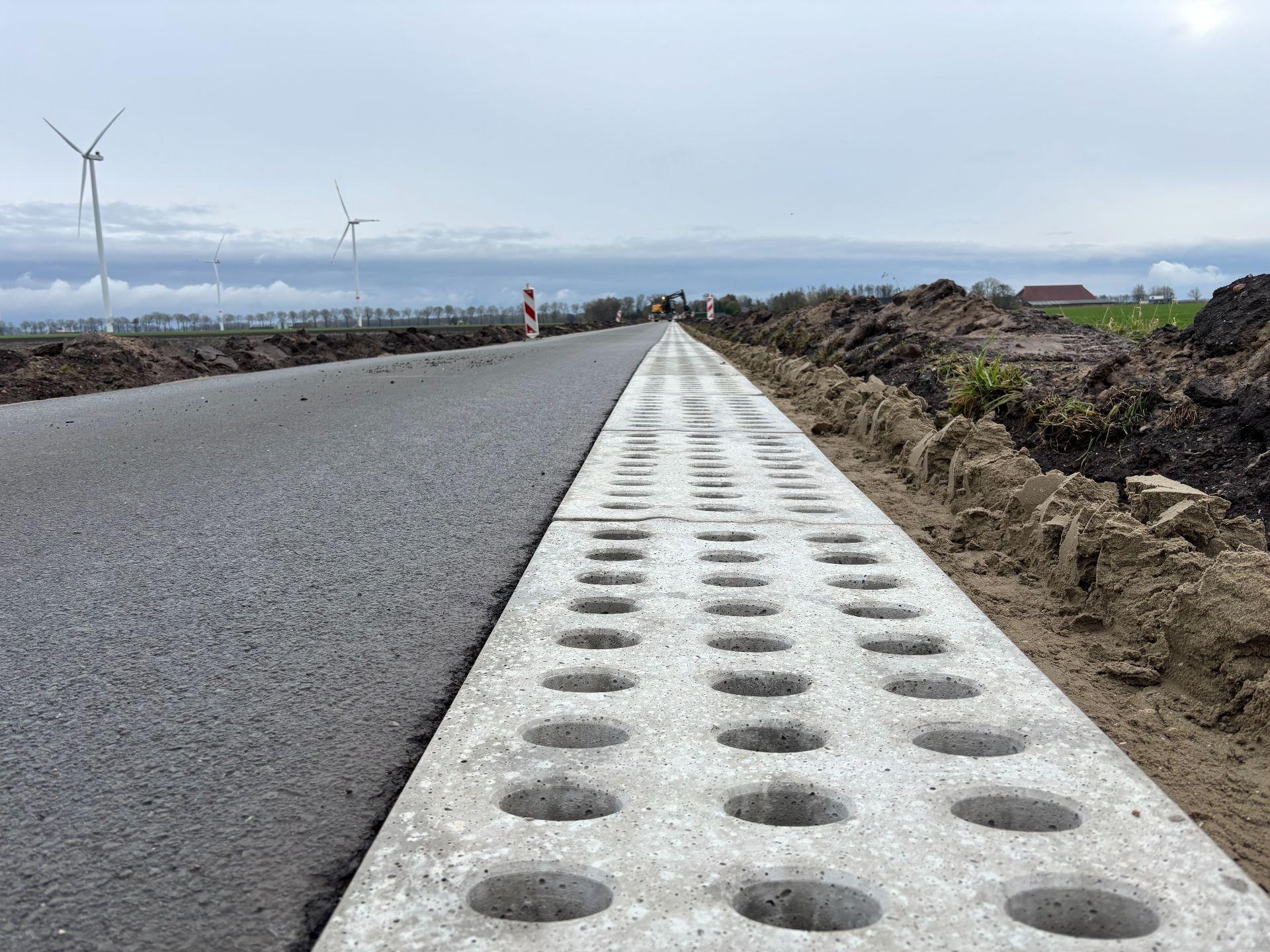 Voor de Geefsweersterweg is uiteindelijk gekozen voor de Greenstrook van Noppert Beton, uitgevoerd in een variant van 60 centimeter breed. Deze bermverharding biedt een solide en onderhoudsarme oplossing en draagt bij aan de verkeersveiligheid door het voorkomen van spoorvorming en beschadiging van de berm. De uitvoering van het project was in handen van aannemer Klaas Bijlsma uit Sint Annaparochie. Het resultaat is een functionele en toekomstbestendige inrichting die perfect aansluit bij de eisen van het buitengebied en de ambities van de gemeente Eemsdelta.