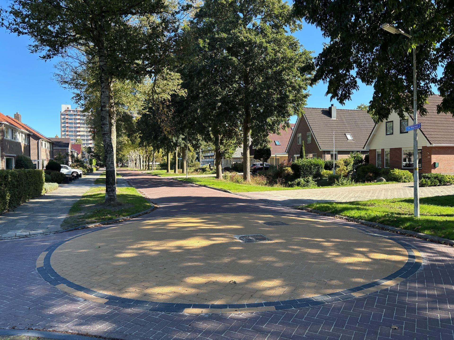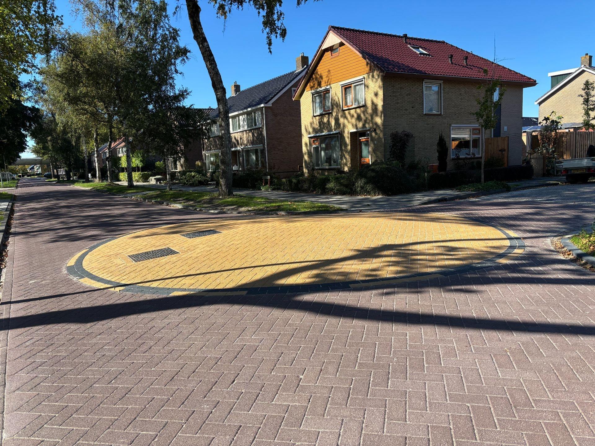 Naast diverse tegels en banden leverden we ook onze 100% kleurechte Noptop-klinkers in de warme kleur Heide – een duurzame en stijlvolle keuze die bijdraagt aan een fraai straatbeeld.