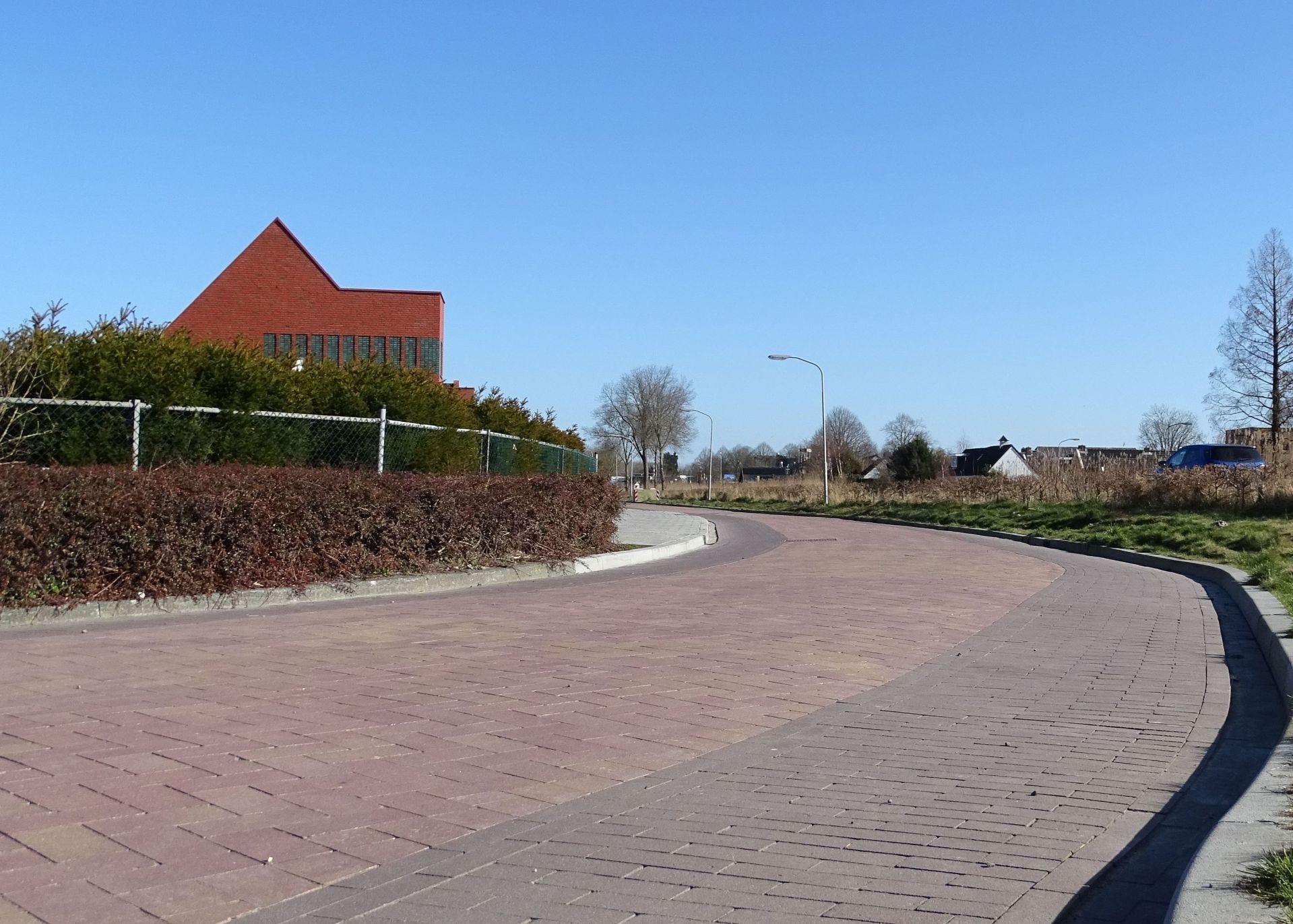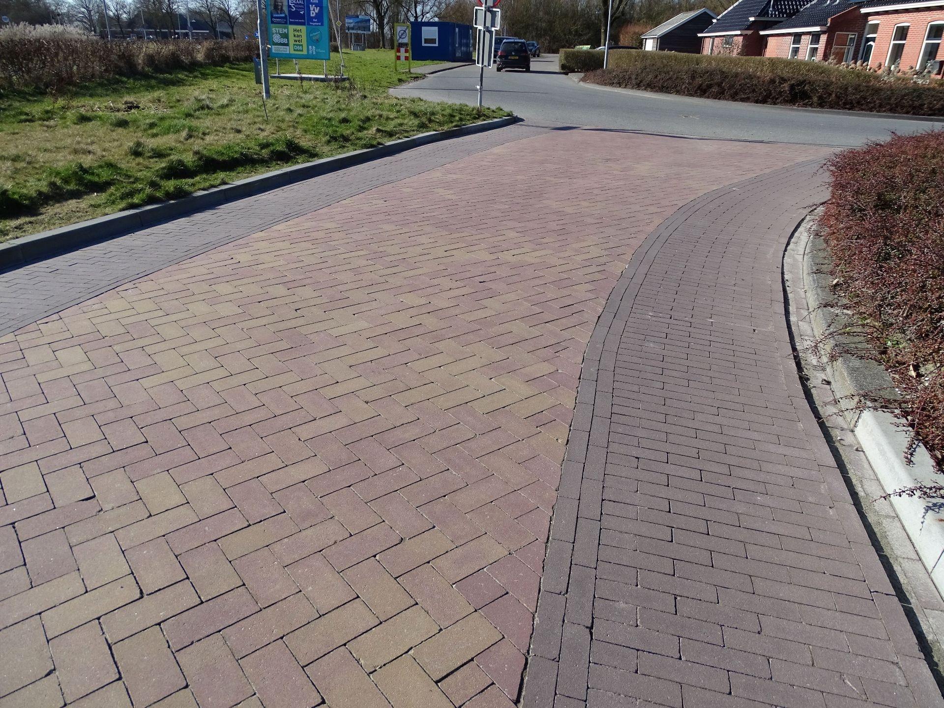 Voor de bestrating levert Noppert Beton naast de standaard grijze materialen ook hoogwaardige TRINITOP betonstraatstenen. Voor de straten wordt gebruikt gemaakt van Normaalformaat TRINITOP in de kleur Terra rood/geel genuanceerd (nr. 5262), fraai afgewisseld met stroken Dikformaat TRINITOP in Terra signalbruin (nr. 338). Beide formaten zijn uitgevoerd zonder vellingkant, wat bijdraagt aan een strak en modern straatbeeld.