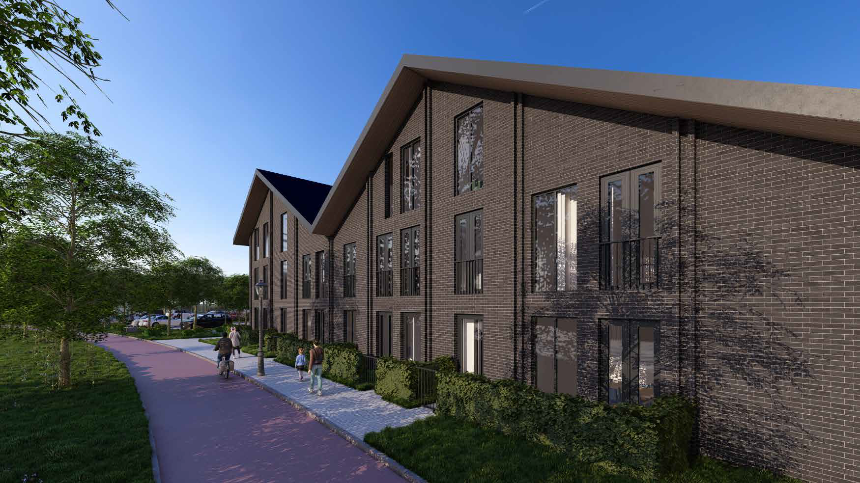 Aan de rechter zijgevel worden vier koopwoningen ontwikkeld, met woonoppervlakten variërend van 113 m² tot 164 m². Boven de supermarkt komen bovendien acht sociale huurwoningen, waarmee het plan bijdraagt aan zowel betaalbaar wonen als een levendige omgeving.