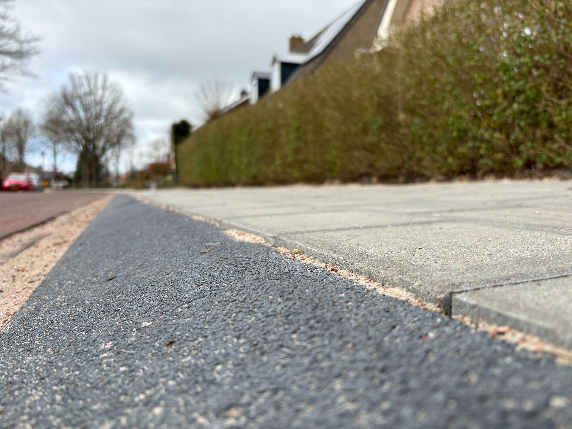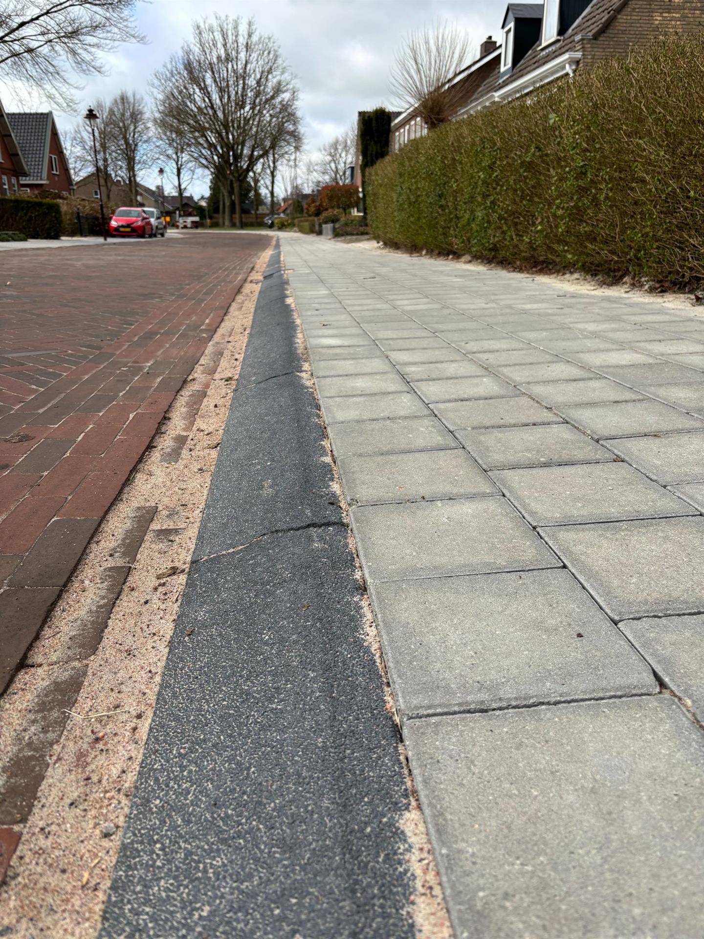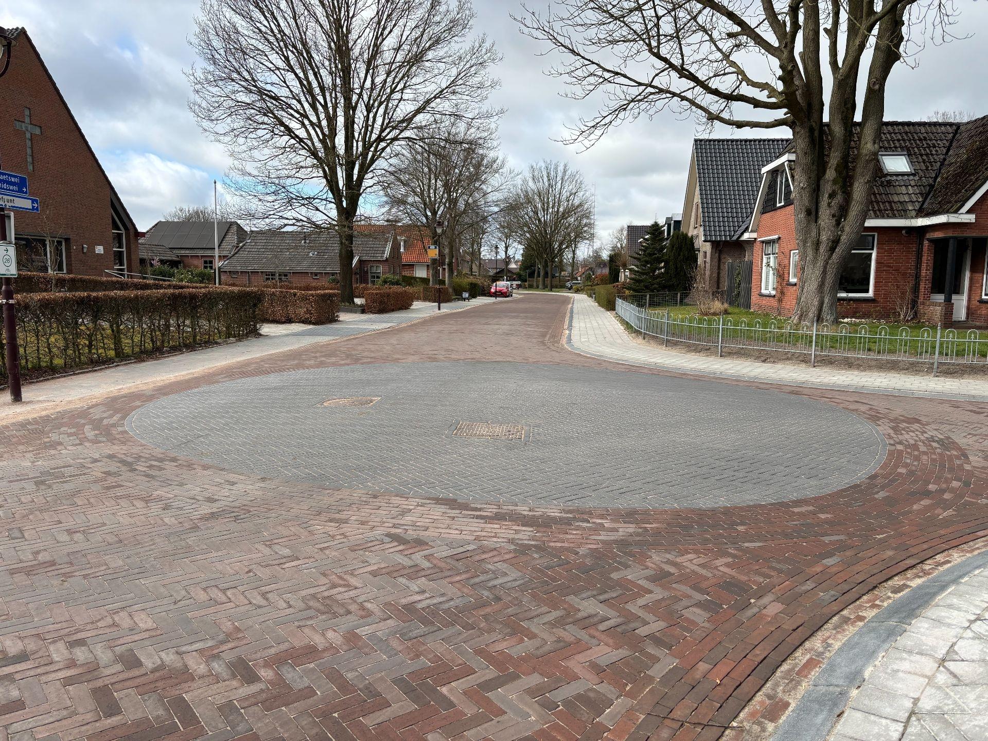Voor de afwerking van de rijbanen is gekozen voor gebakken klinkers, die zorgen voor een duurzame en sfeervolle uitstraling passend bij het dorpsbeeld.