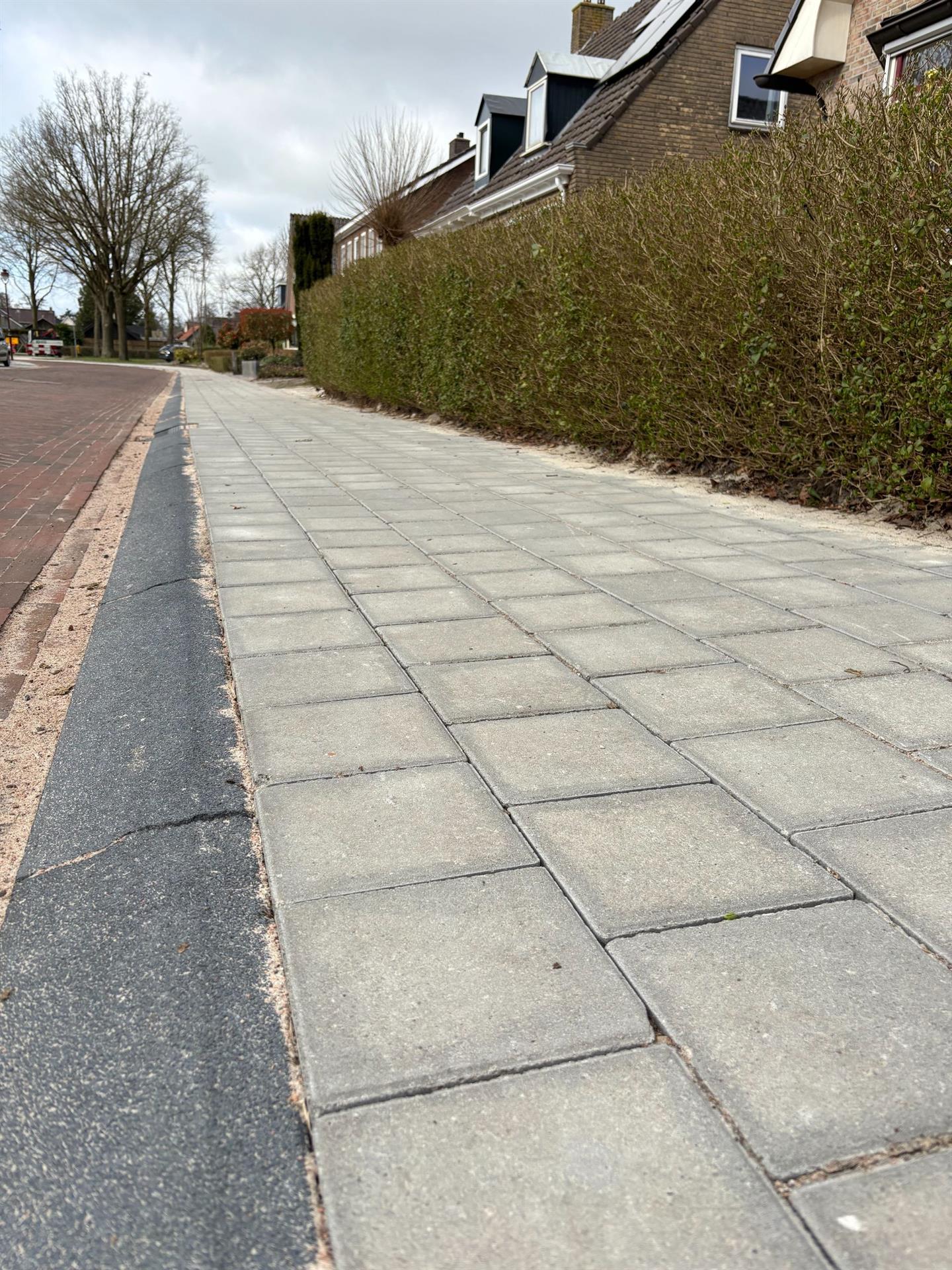 De stoepen zijn uitgevoerd met dubbelklinkers en normaalformaat klinkers, geleverd door Noppert Beton.